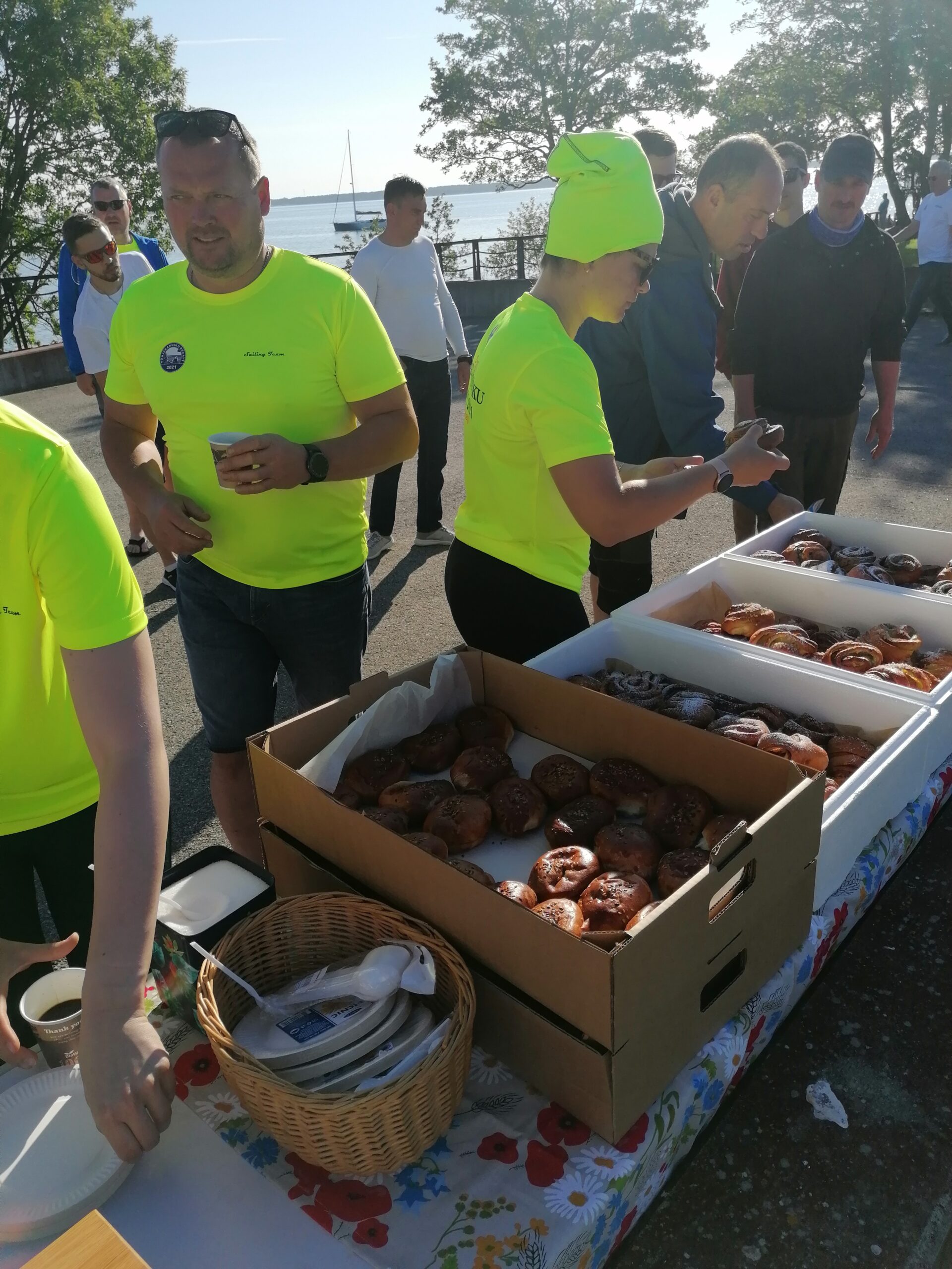 Ja just nii nagu lubatud sai, oli hommikul kohal ka Raja talu pere. Kaasas oli mitu termost kuuma kohvi, palju palju värskeid pirukaid, värske talupiim ning muidugi kõige soojemad soovid meie purjetajatele.