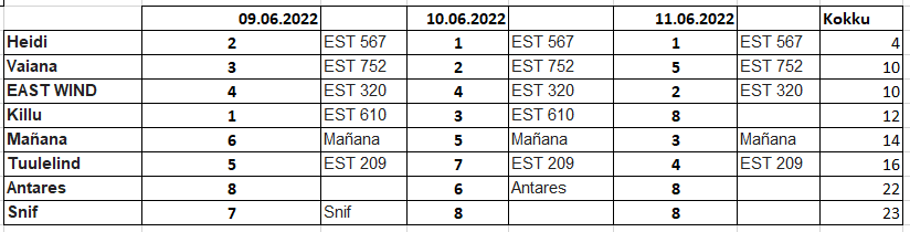 Tulemused 9.06.2022