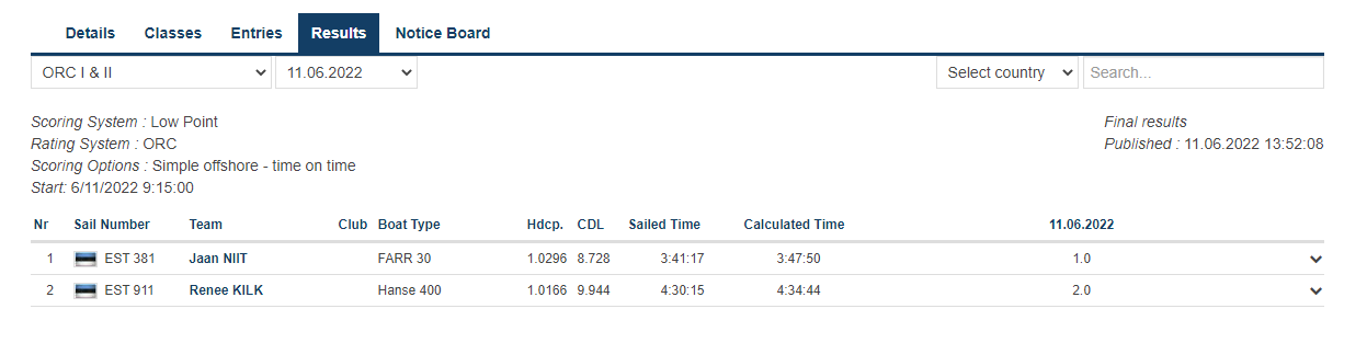 Tulemused 11.06.2022