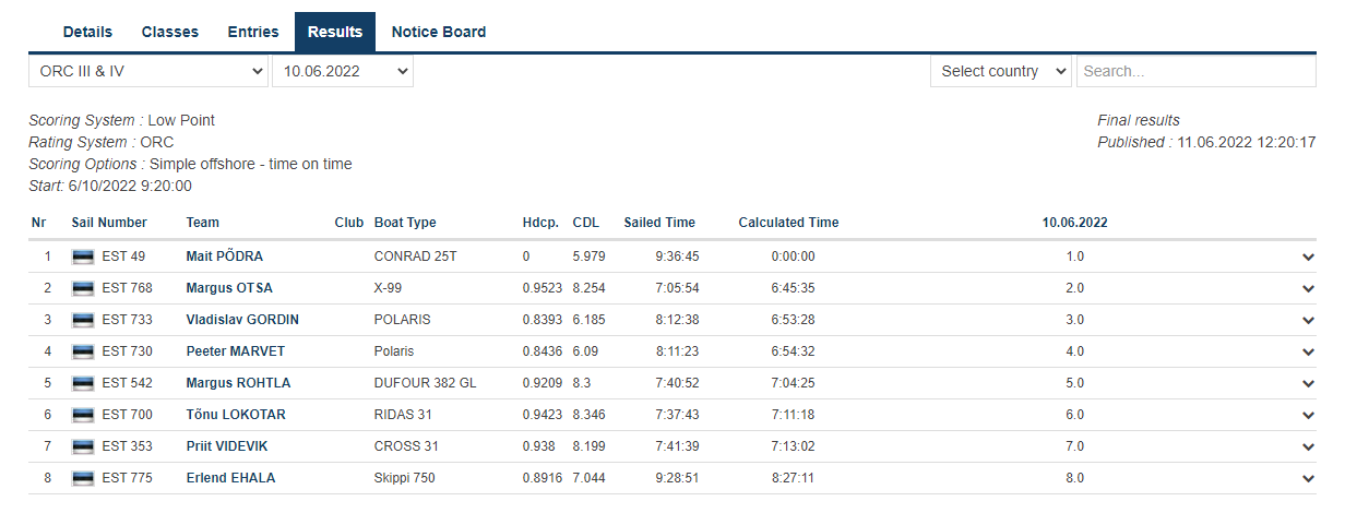 Tulemused 10.06.2022